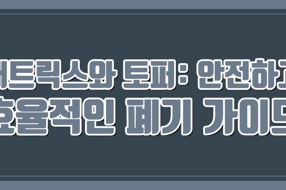 우리 생활 속 깊숙이 자리 잡은 매트리스와 토퍼. 편안한 수면을 책임지는 소중한 존재이지만, 수명이 다하면 골칫거리가 되기도 합니다. 단순히 쓰레기로 버리는 것이 아니라, 환경과 안전을 고려한 올바른 폐기 방법을 알아야 합니다. 이 글에서는 매트리스와 토퍼를… 매트릭스와 토퍼: 안전하고 효율적인 폐기 가이드